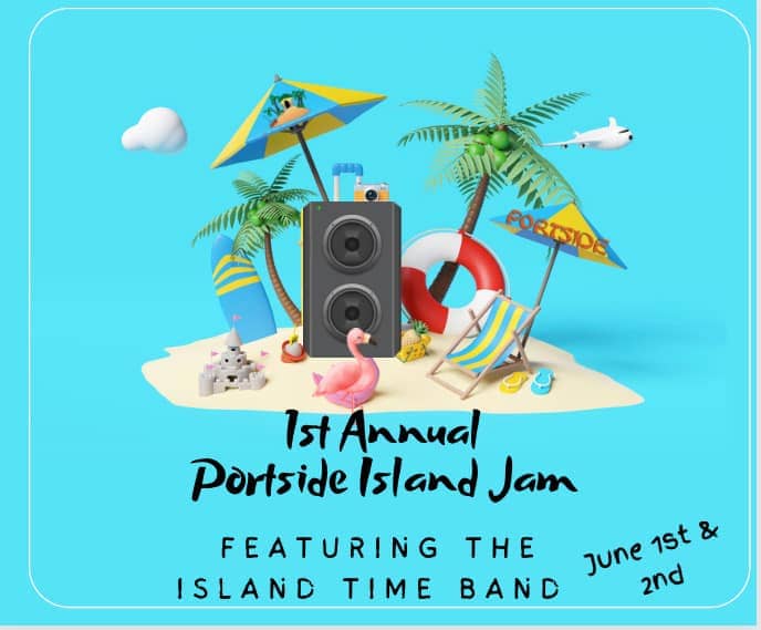 Portside Island Jam: Live music by the Island Time Band, Caribbean-themed food and libations at Portside Grill & Bar. 1-6 p.m. Also June 2.